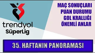 Trendyol Süper Liginin 35. haftasinda oynanan maçlar, skorlari, puan durumu, gol kralligi ve 36. haftanin programi. #trendyolsüperlig #35.hafta #maçlar #puandurumu #golkrali...